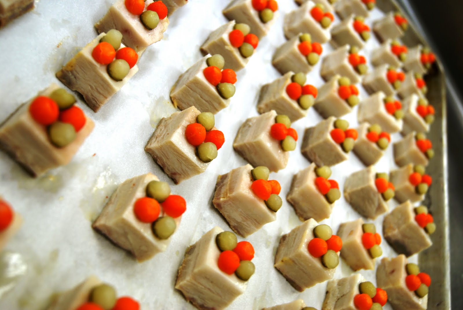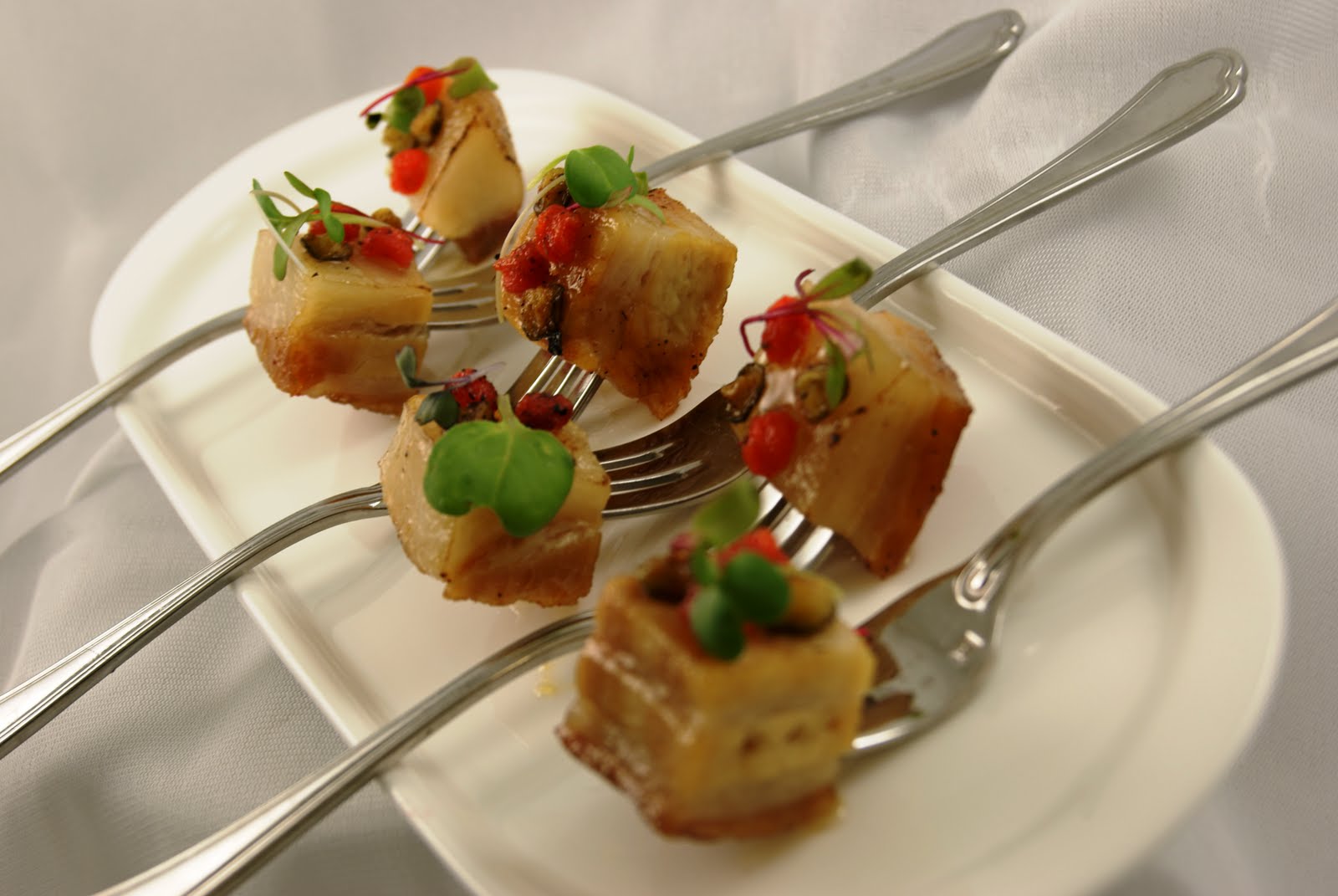 nt I placed a couple carrots and a couple cucumbers balls on top of each of the pork belly bites.