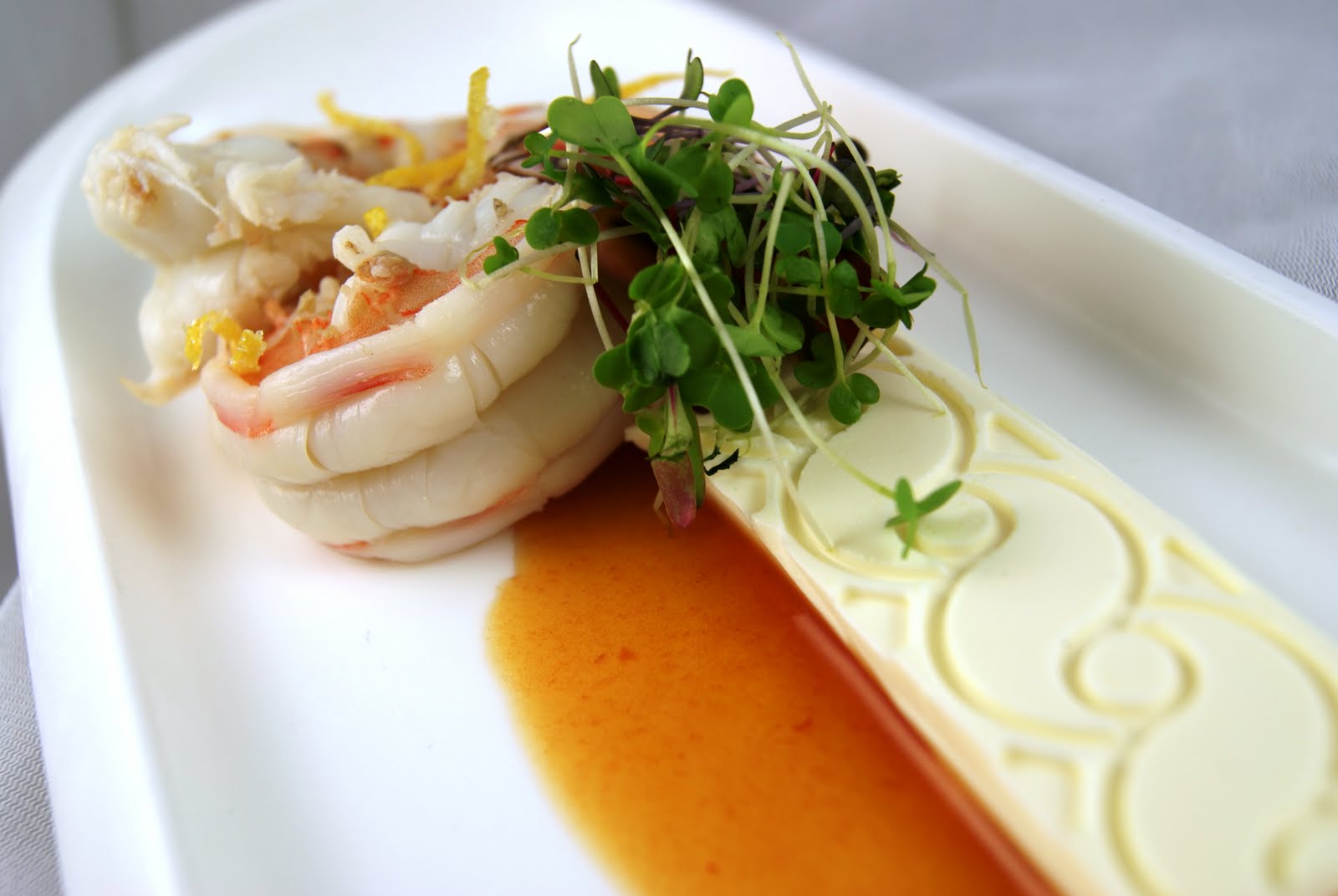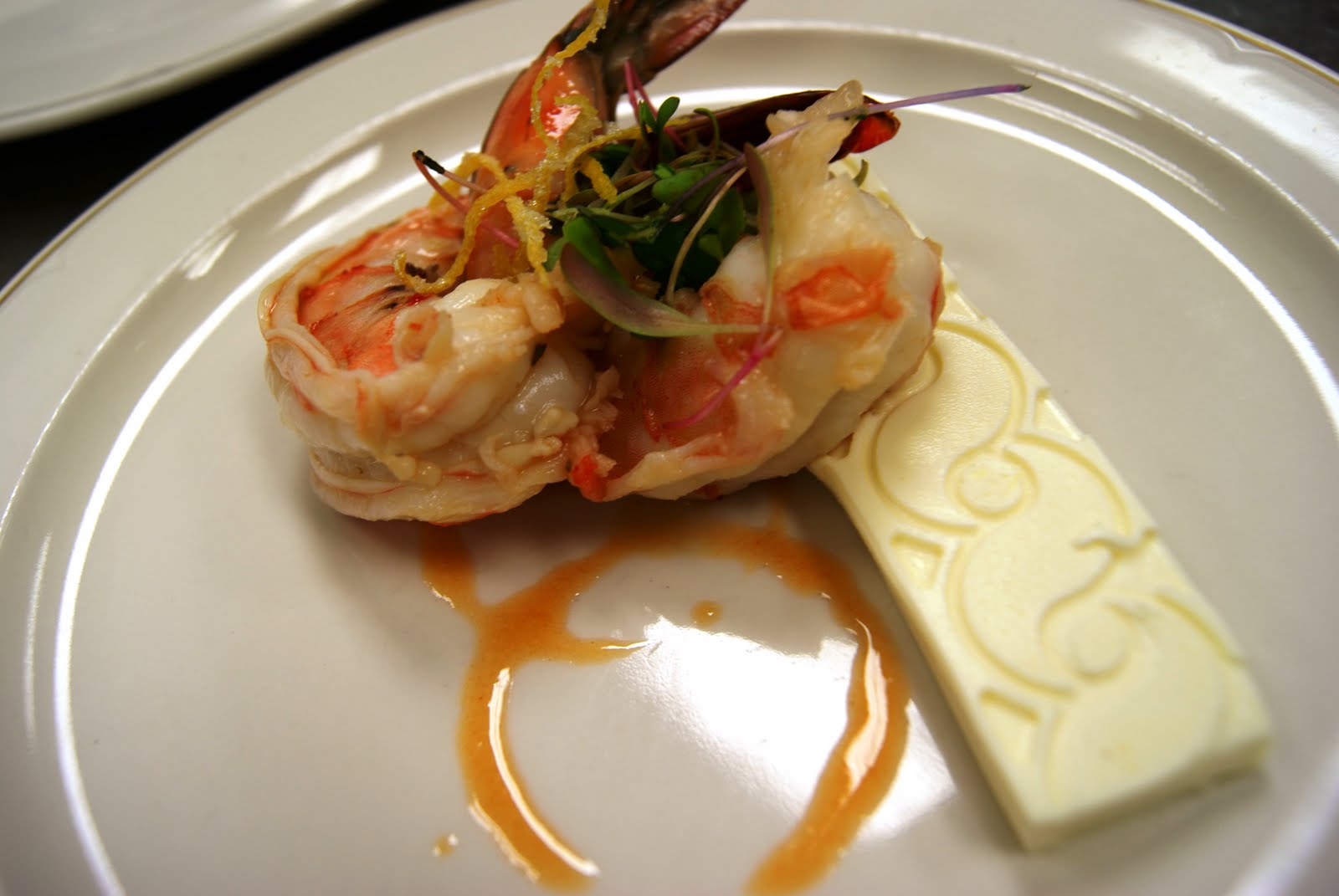 The final result with the shrimp, the tomato syrup, the horseradish royale and the candied lemon zest is pretty phenomenal. It has the components of the classical shrimp cocktail, with the syrup and royale acting like a deconstructed and far more interesting, cocktail sauce.