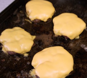 The burgers, they said, should be just a little over-seasoned. They used American cheese to top them after they were flipped on the griddle, which melted and oozed over the sides. The purpose for hand-pattying them loosely was so that they would seem more tender, and they should have a coarse texture for the cheese to melt into.