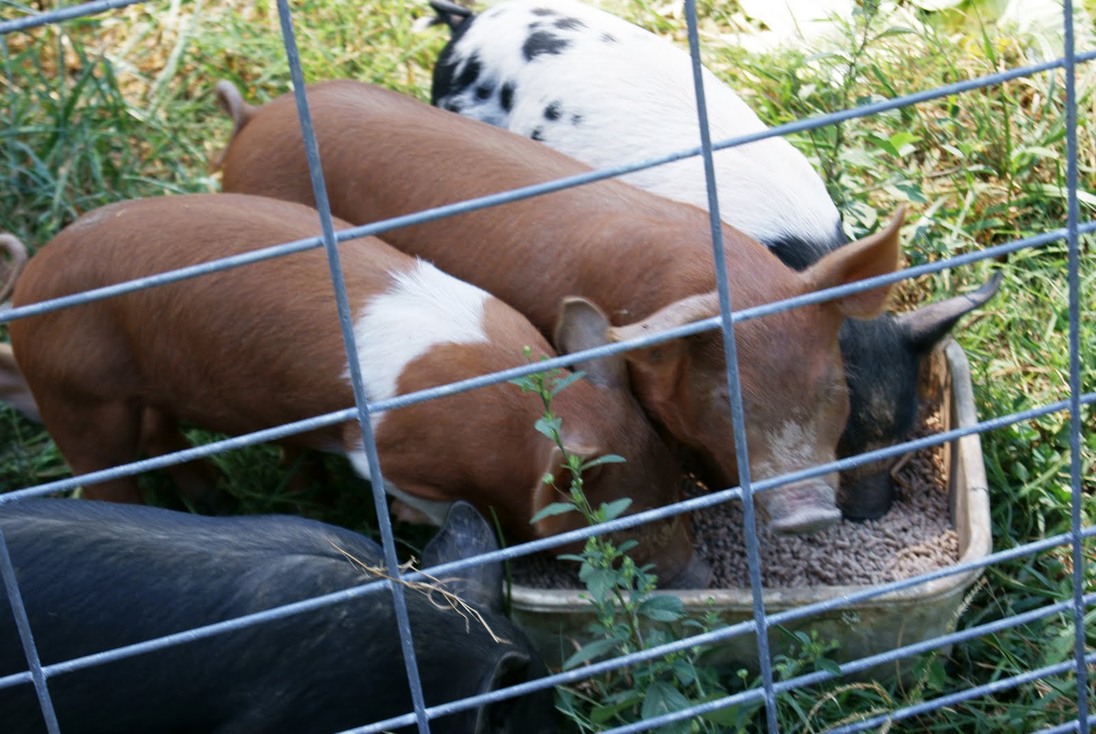 Come feeding time, these pigs are well taken care of. All of their feed is organically grown, and of course the leftovers are composted right on the farm.