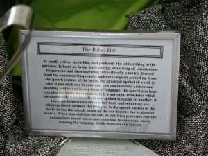 The Babelfish from “Hitch Hikers Guide to The Galaxy” was paid proper homage in the form of an ice carving by the very talented Lydia Ross. It is pictured in the center of the buffet, along with the seafood items.