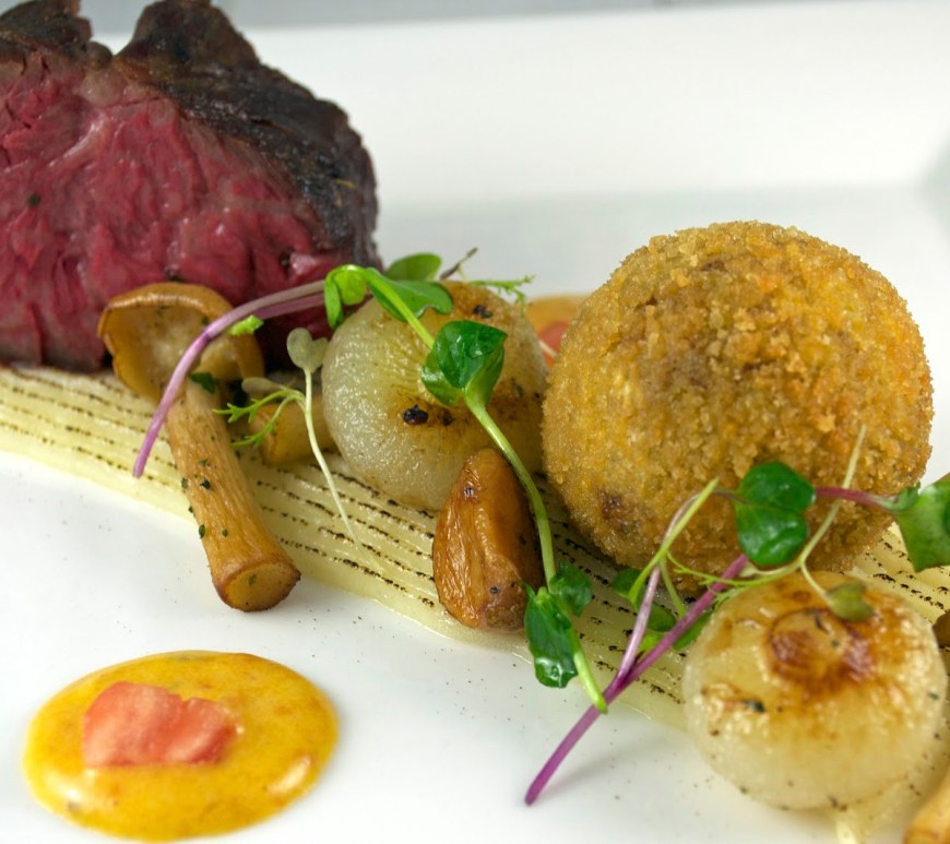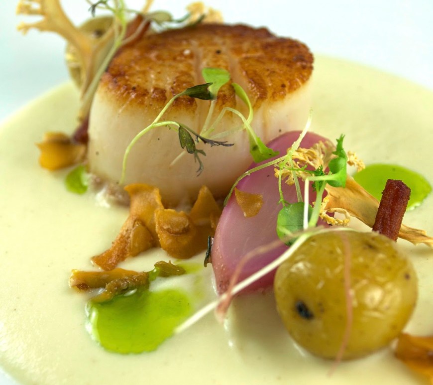 This dish was prepared for a wine dinner earlier this week, and was served with a 2012 Broken Road Chardonnay. The ravioli was prepared by rolling pasta out thinly and placing a dollop of Boursin cheese, then making an indention for a raw egg yolk. The pasta is then brushed with egg wash before another another sheet of pasta is placed on top; the dull … Continue reading Egg Yolk Ravioli, Braised Pork Belly, Early Harvest Vegetables, Butternut Squash Puree